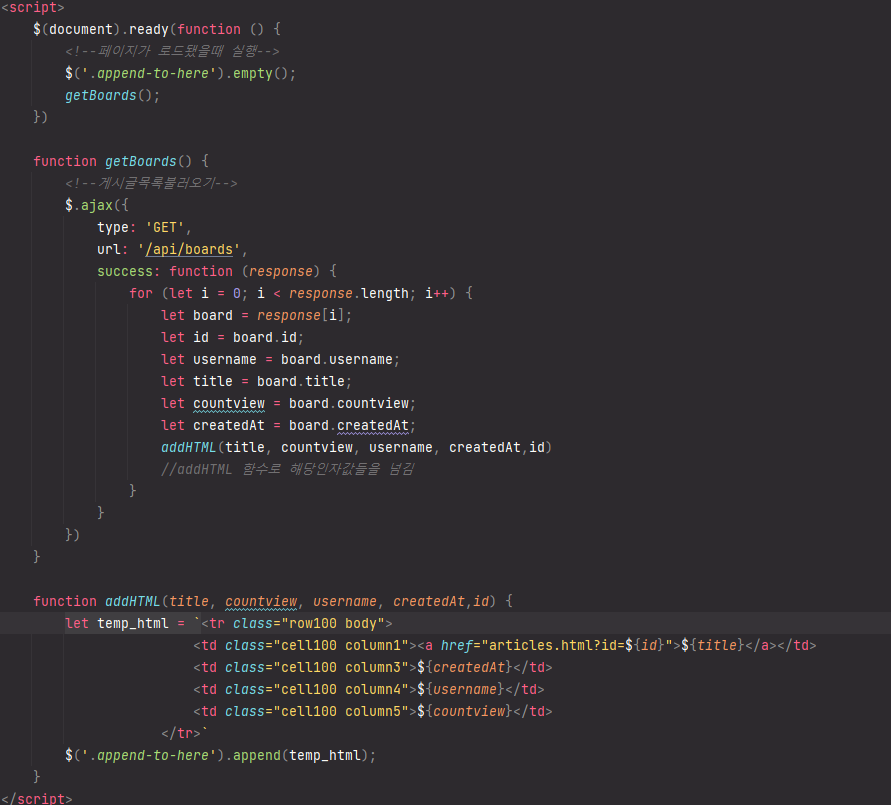 프론트엔드쪽에서 시간을 많이 빼고싶지않아서 그냥 강의에서 사용했던 html을 글쓰기함수만 남기고