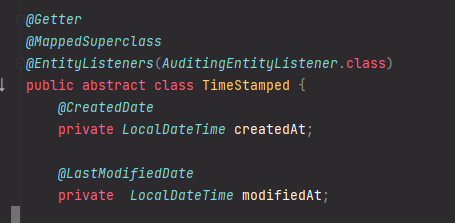 똑같이 타임스탬프안에 @Column으로 넣어뒀으면 됐을것같은데 나중에서야 떠오른게 아쉬운부분