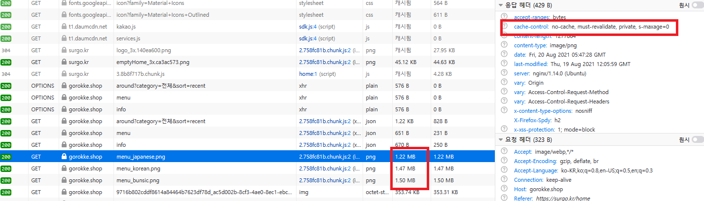 이렇게 캐시컨트롤을 추가해주었다
